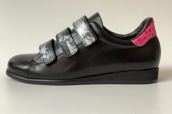 かかとのピンククロコエナメルがポイント / ベルクロスニーカー